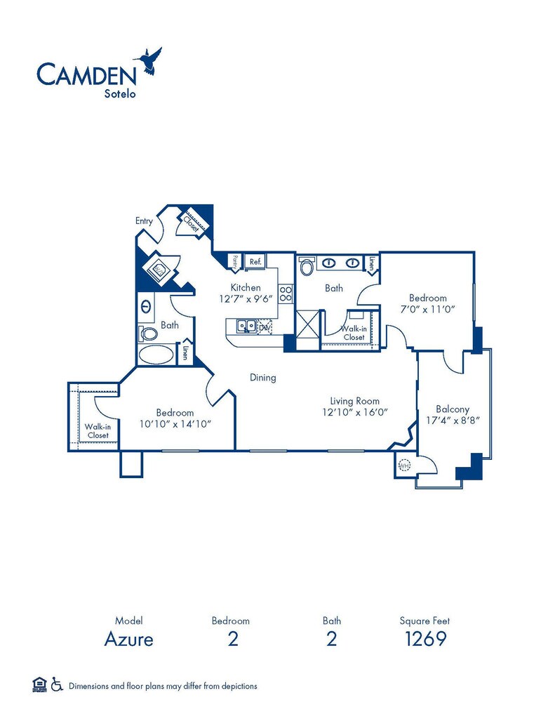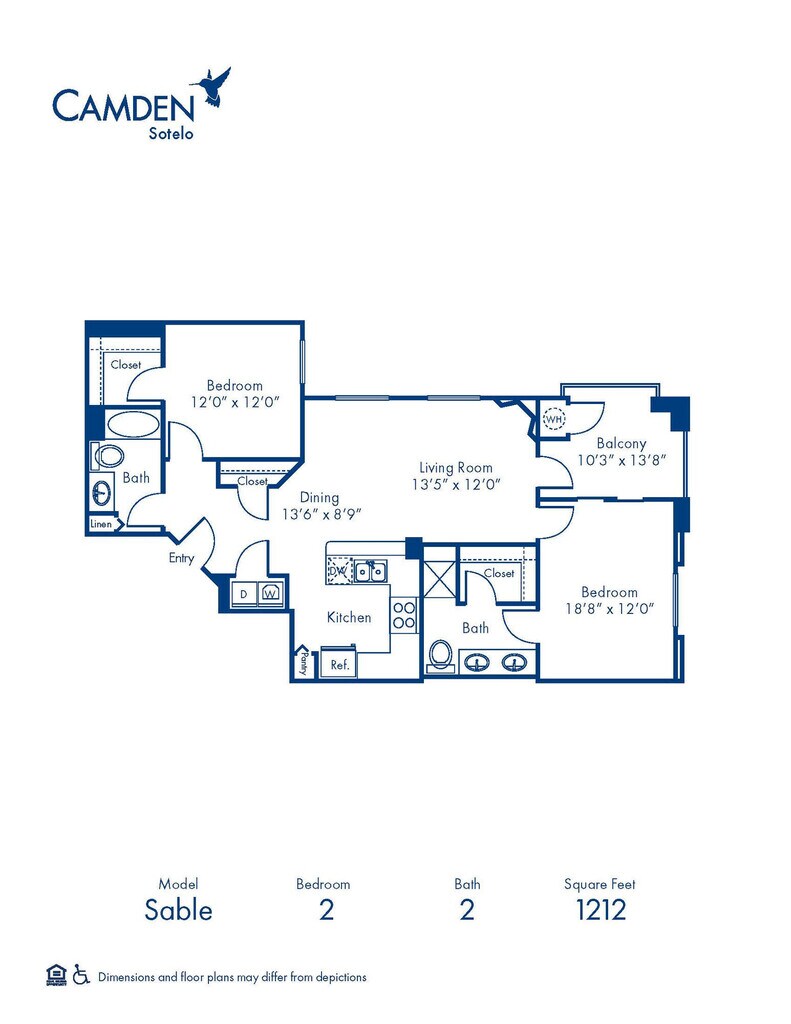 Apartment Model: Sable2 Bedroom, 2 Bath, 1212 sq ftUnavailableSable - Floorplan 1 Azure