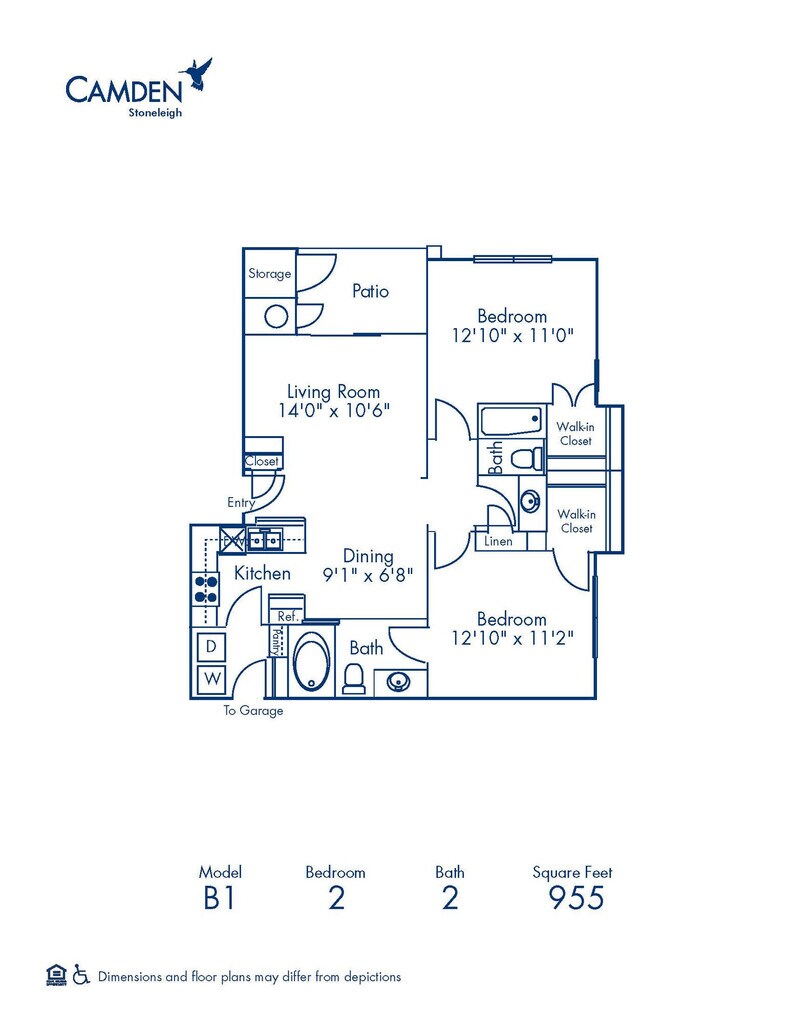 Apartment Model: B12 Bedroom, 2 Bath, 955 sq ftUnavailable![]()