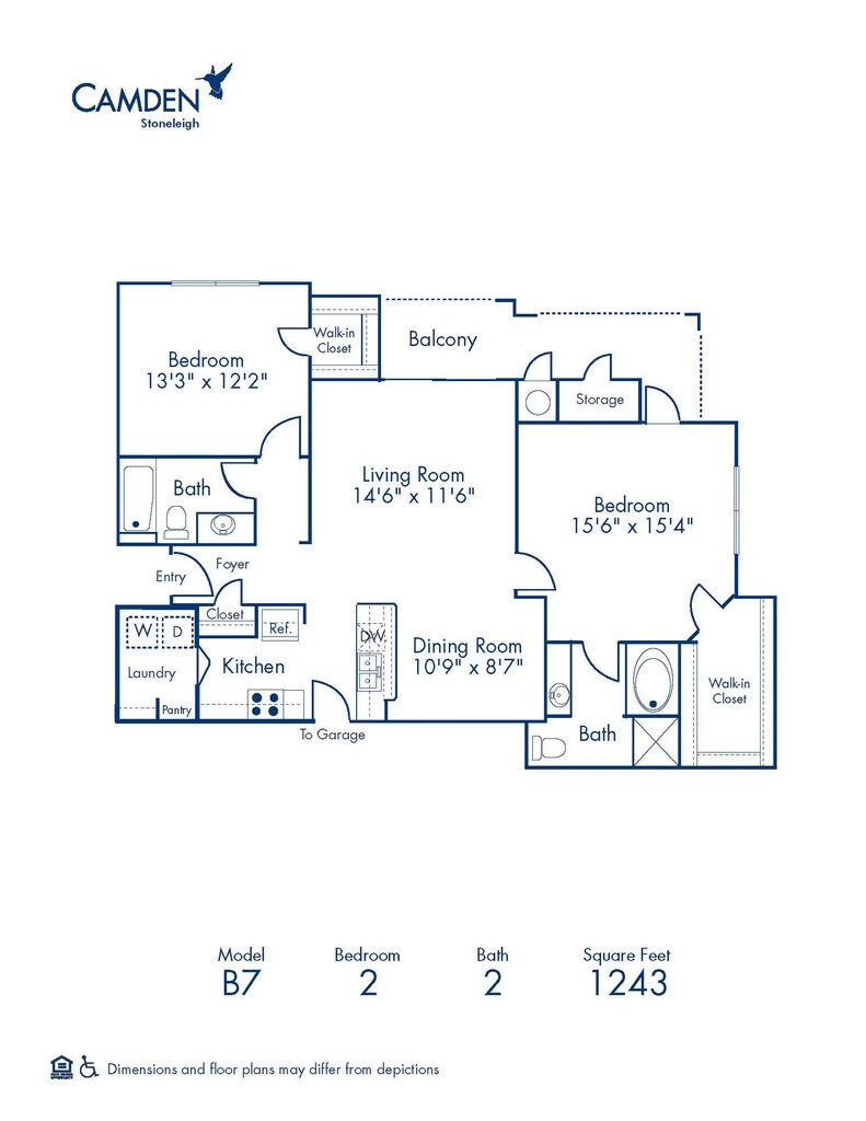 Apartment Model: B72 Bedroom, 2 Bath, 1243 sq ftUnavailable![]()