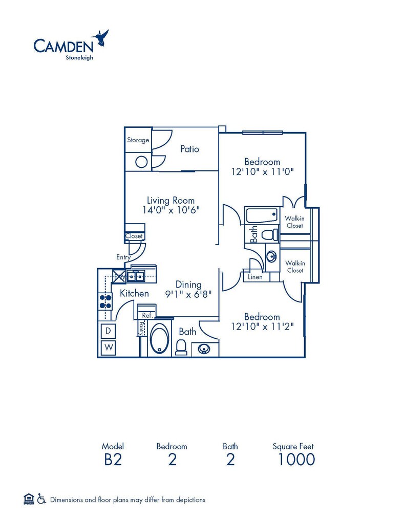 2 Beds, 2 Baths, 1000 sq ftModel Gallery