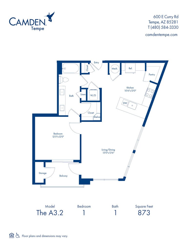 Camden Tempe offers a variety of spacious one, two, and three-bedroom luxury apartment homes in an ideal location. Step into chef-inspired kitchens with white quartz countertops, stainless steel appliances, under-cabinet lighting, and brushed nickel fixtures. Choose between two interior finish styles. Modern finishes at Camden Tempe East: chestnut cabinetry, bottom-freezer refrigerators, and oak-look flooring in living areas or Contemporary finishes at Camden Tempe West: gray cabinetry, white subway tile backsplash, side-by-side refrigerators, and gray, wood-look flooring throughout. Each apartment also features full-size washers/dryers, and private patios or balconies. Each apartment comes with a one-car garage or an assigned covered carport. Detached garages are available for rent in Camden Tempe East. Plus we've got electric car charging stations available for residents. Amenities fitness center, pool, and hot tub, complete with sundecks and gas grilling stations with dining areas! Your pets will love it, too, since our pet-friendly community has no pet weight limit and has a controlled-access, off-leash dog park for your best friend, along with a pet grooming station. Camden Tempe residents are moments away from popular shopping and dining locations at Tempe Marketplace, Scottsdale Fashion Center, Casino Arizona, Talking Stick Resort, Tempe Town Lake, and Mill Ave. As an Airbnb-friendly community, residents can host their apartment home on Airbnb part-time, up to 90 days per year. (Hosting is subject to local laws and regulations.)Camden residents can take advantage of an exclusive discount with CORT to rent furniture and accessories for your apartment home. Pricing and availability are subject to change until a quote is saved. Call or visit to save a quote.
