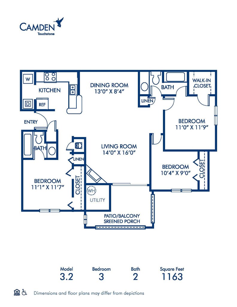 Apartment Model: 3.23 Bedroom, 2 Bath, 1163 sq ftUnavailable3.2 - Floorplan 1