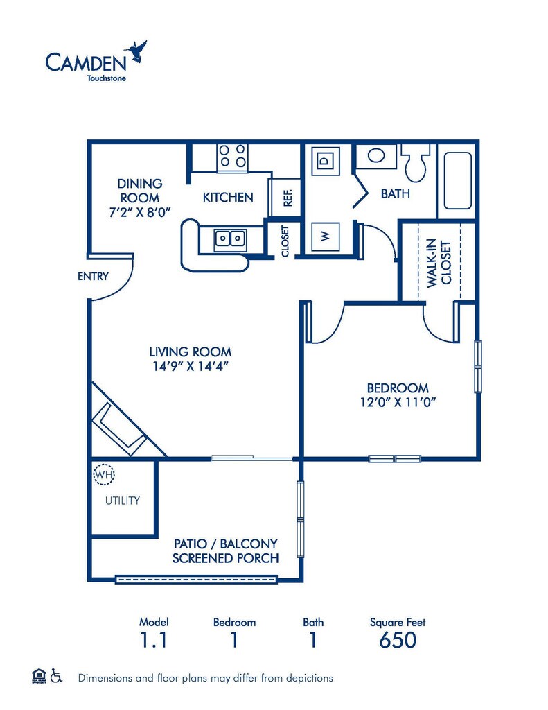 1 Bed, 1 Bath, 650 sq ftModel Gallery