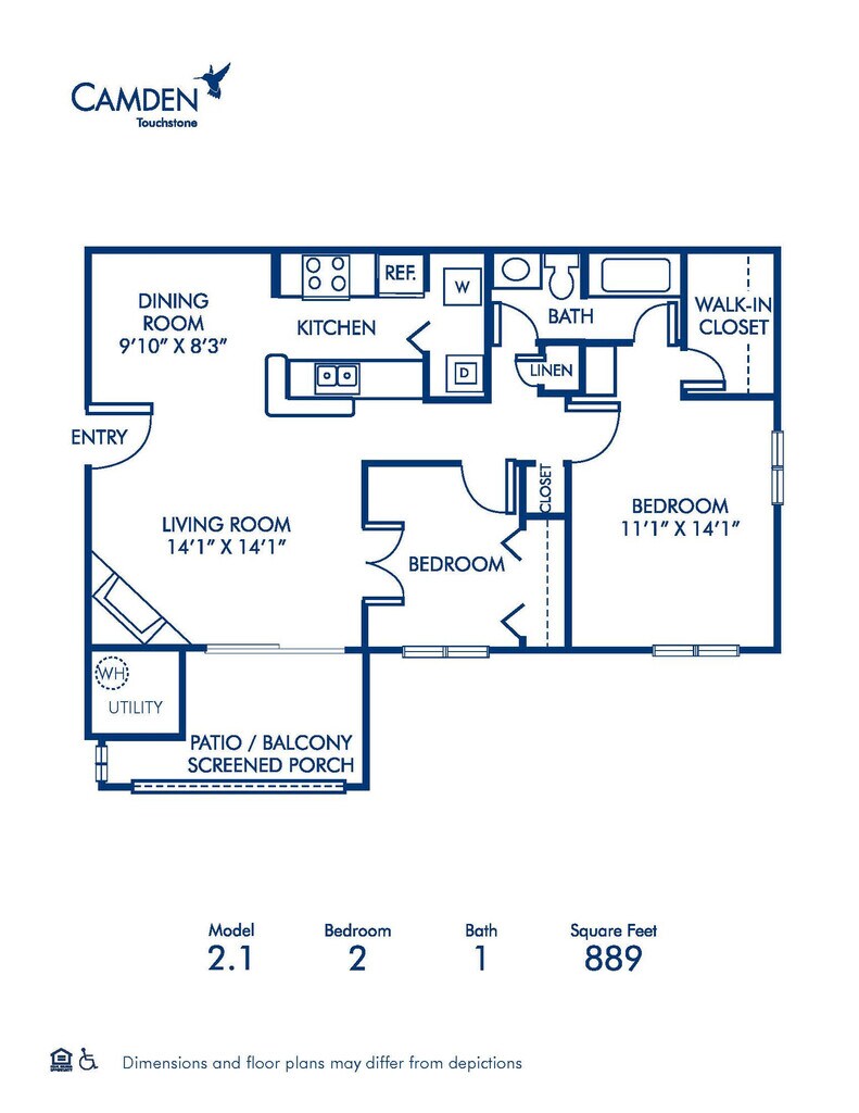 Apartment Model: 2.11 Bedroom, 1 Bath, 889 sq ftUnavailable![]()