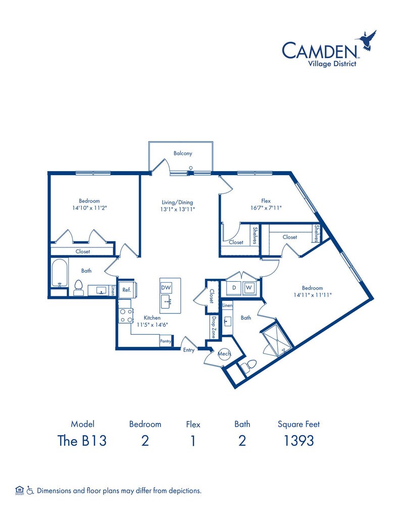Studio to 2 Bedroom Apartments at Camden Village District currently range from $1,469 to $3,179