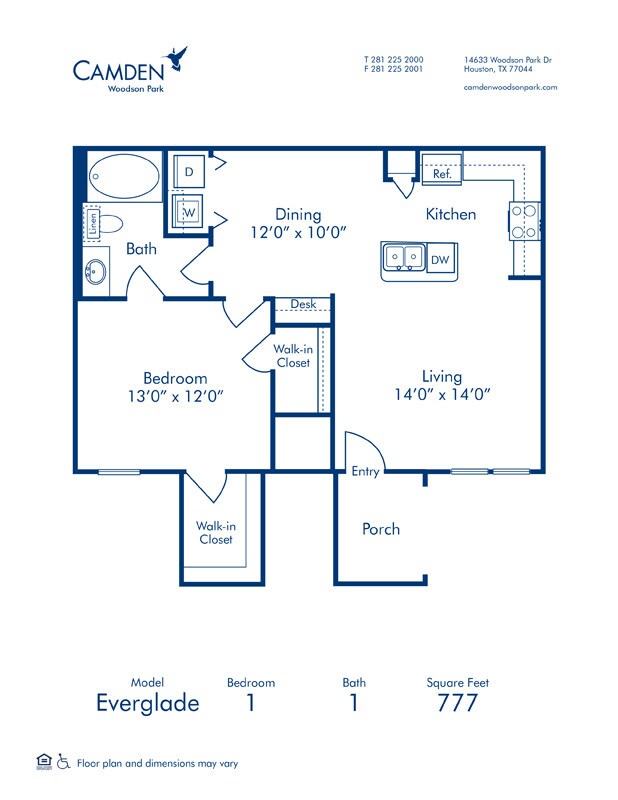 Apartment Model: Everglade1 Bedroom, 1 Bath, 777 sq ftUnavailable![]()