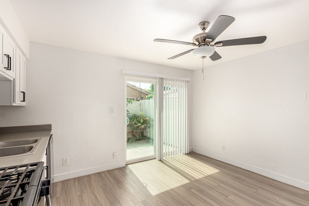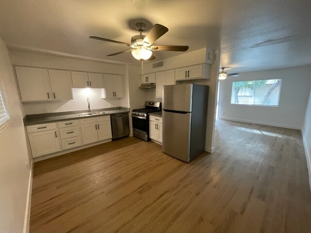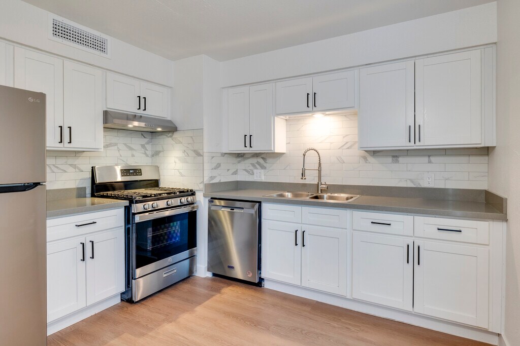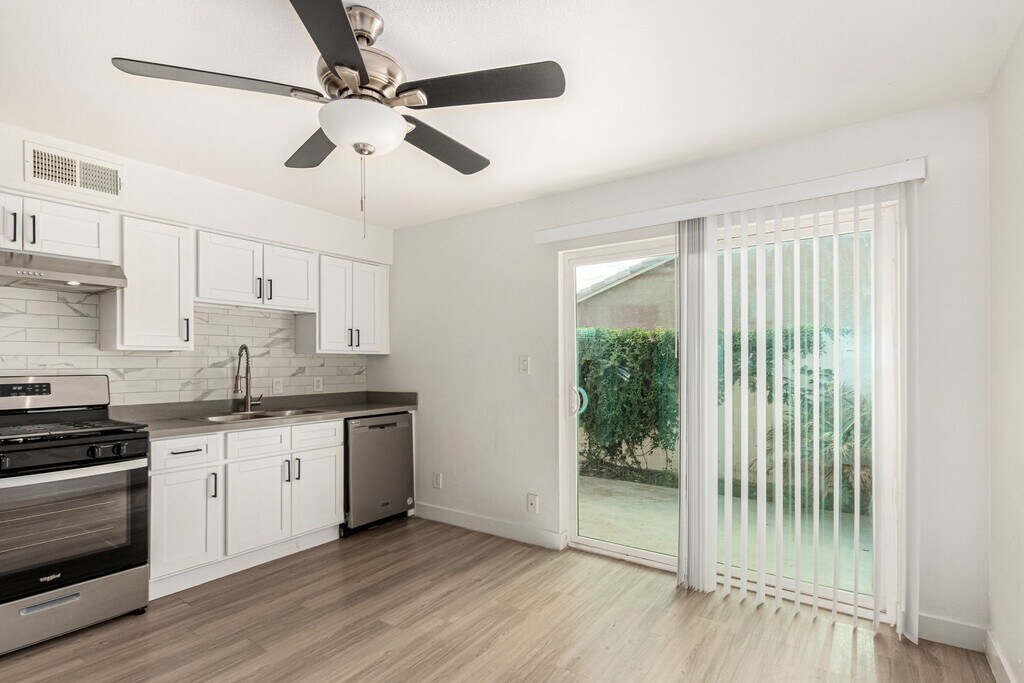 Easy access to the light rail Newly remodeled! New dual pane windows with 2" faux wood blinds Large open kitchen Stainless steel appliances (Refrigerator, Gas Range & Dishwasher) Dining room in kitchen Large Livingroom w/coat closet Stackable Washer/Dryer in unit New Woodgrain vinyl plank throughout Plenty of closet space Mature Landscaping 1 Assigned covered parking space Gated Community