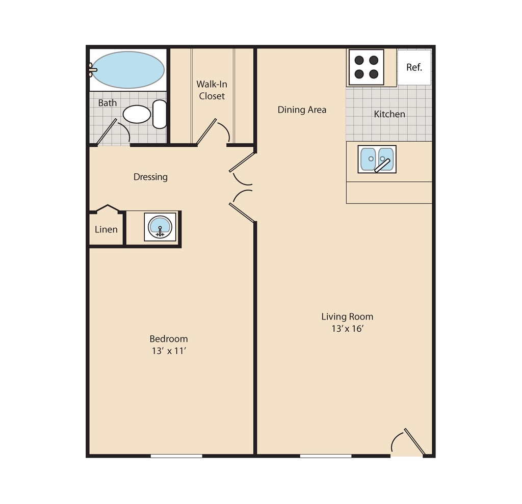 Studio, 1 Bath, 415 sq ftAvailable NowModel Gallery