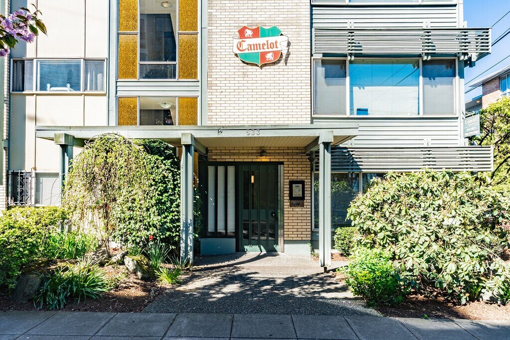 Camelot Apartments hosts nicely updated apartment homes with large floorplans, and abundant windows to let in natural light. Many of these apartments are updated with quarts countertops, stainless appliances, and modern plank floors. The location of Camelot cannot be beat, and you have access to all that Capitol Hill has to offer, and is close walking distance to grocery shopping, restaurants, nightlife, and the public library. Light rail is only a few blocks away. Common laundry, storage , and secured parking is available.