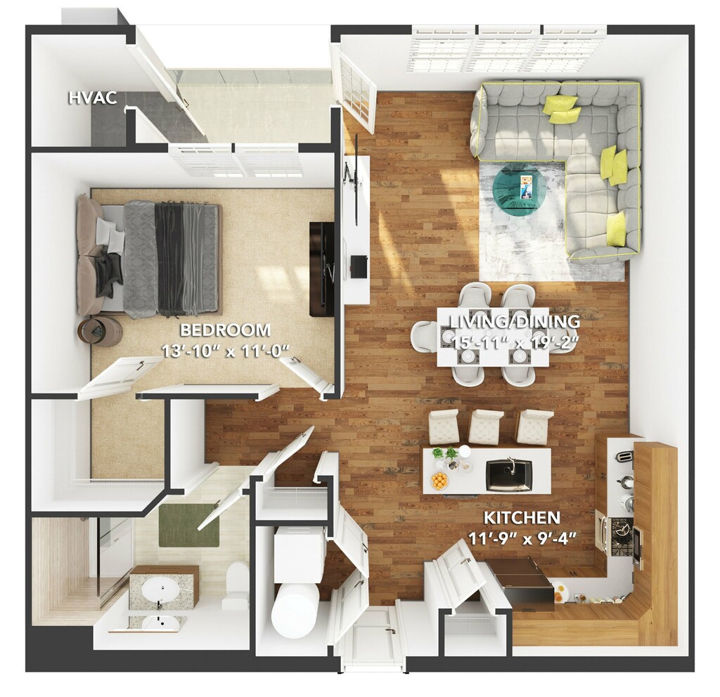 1 Bed, 1 Bath, 718 sq ftAvailable NowModel Gallery