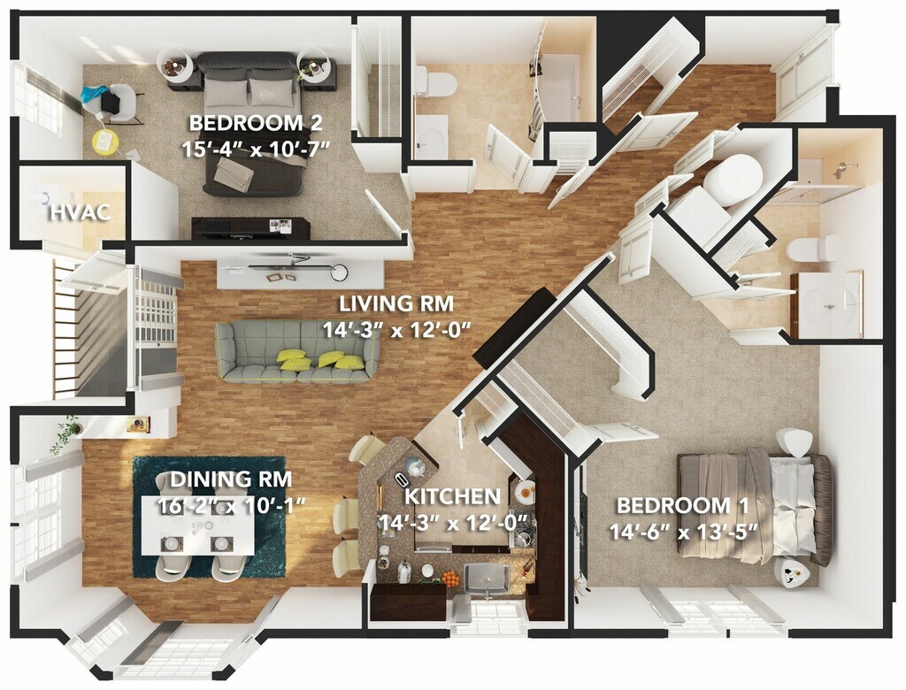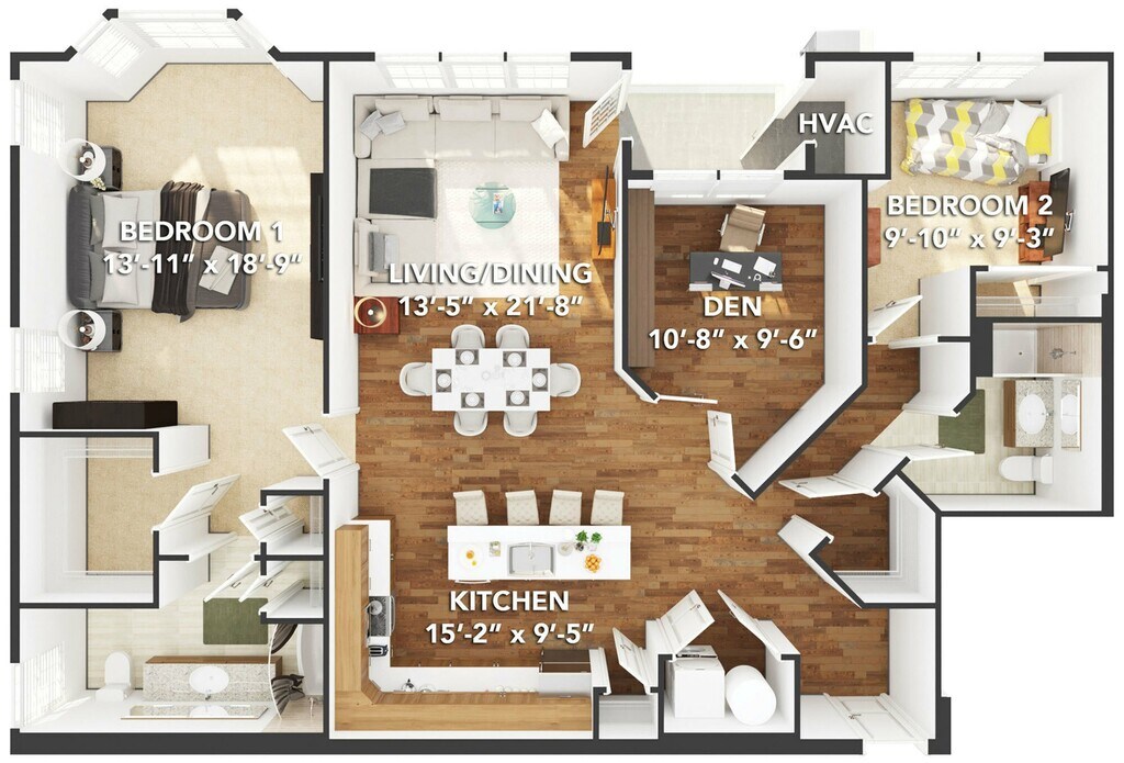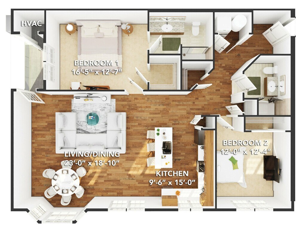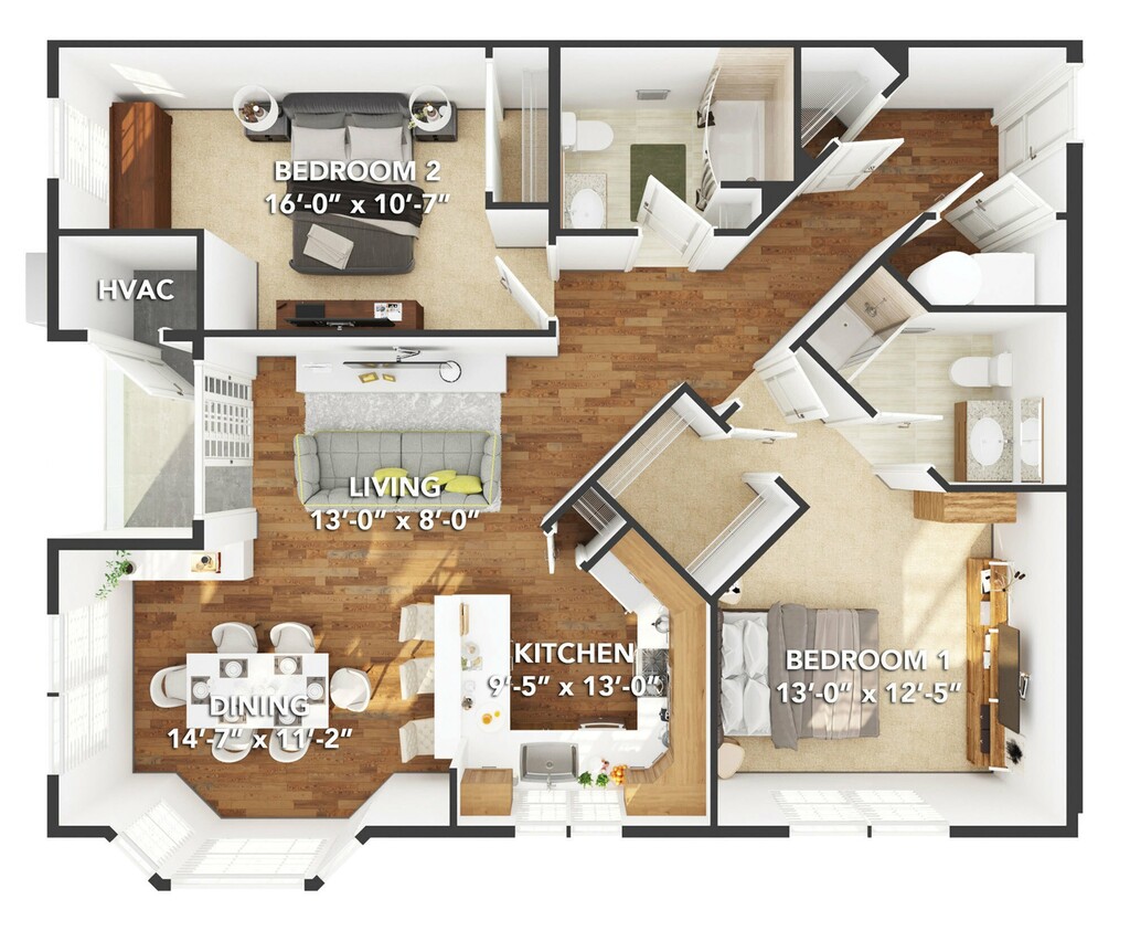 2 Beds, 2 Baths, 1575 sq ftAvailable February 15, 2026Model Gallery