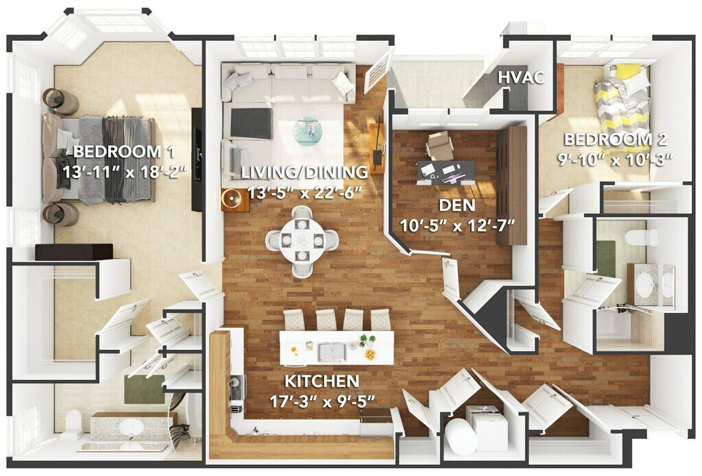 2 Beds, 2.5 Baths, 1834 sq ftAvailable Dec 15Largest 2 BedroomThis is the largest 2 Bedroom at this PropertyAvailability Details