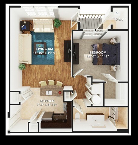 1 Bed, 1 Bath, 795 sq ftModel Gallery