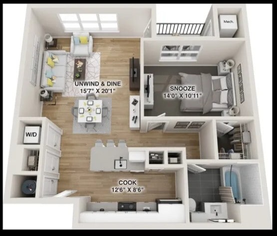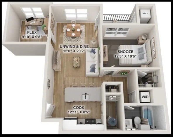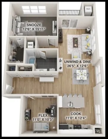 1 Bed, 1 Bath, 1251 sq ftAvailable Apr 6Largest 1 BedroomThis is the largest 1 Bedroom at this PropertyModel Gallery
