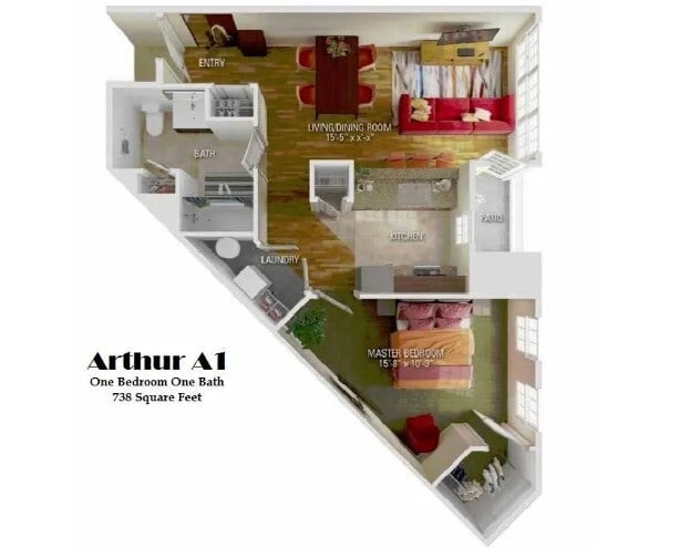 Apartment Model: ArthurFrom $2,1911 Bedroom, 1 Bath, 738 sq ftAvailable Now![]()