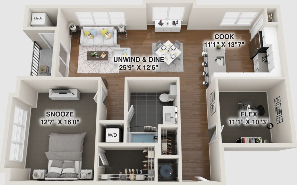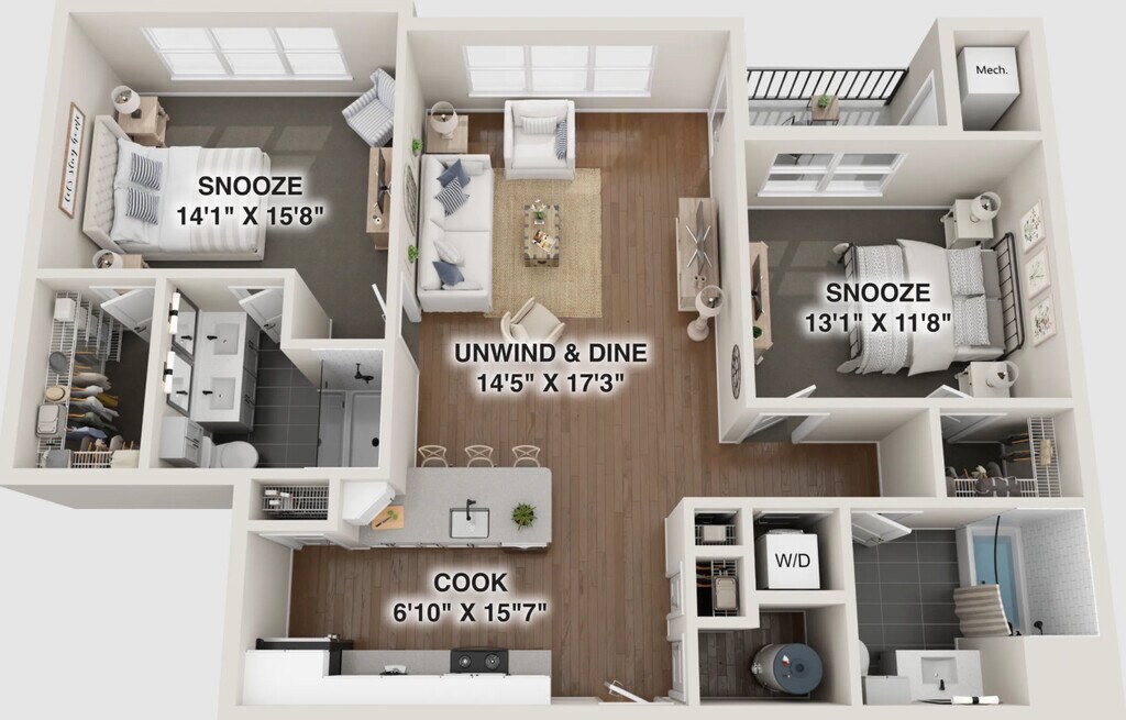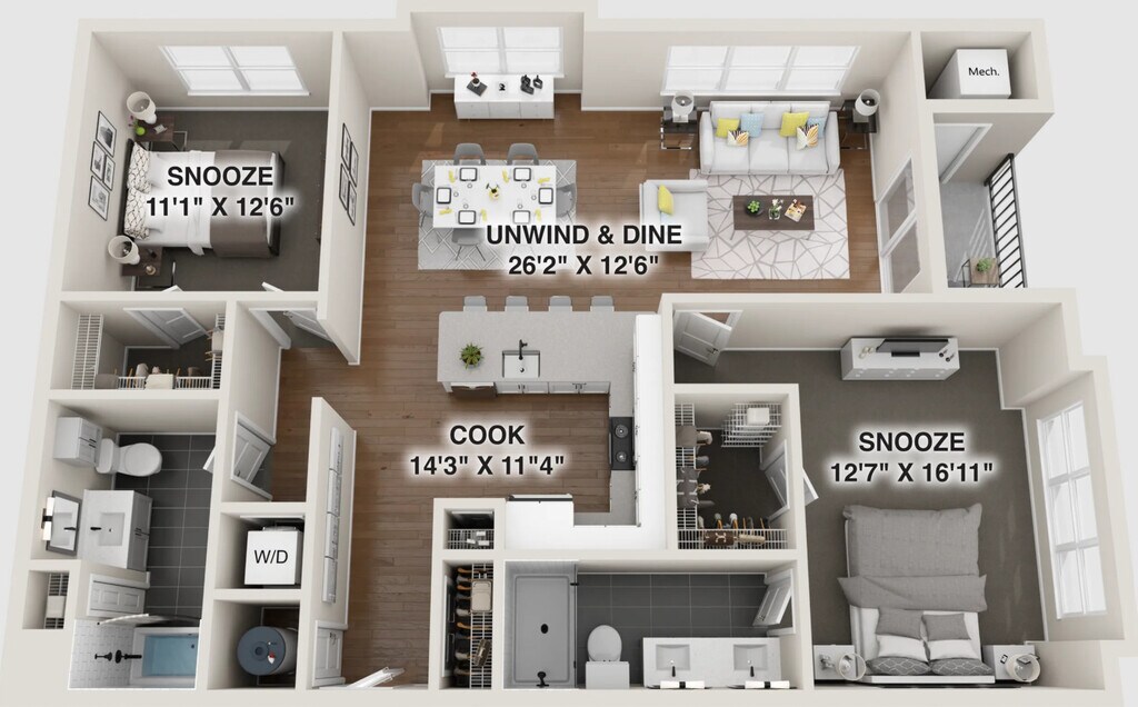Apartment Model: Wall$3,0952 Bedroom, 2 Bath, 1254 sq ftAvailable November 15, 2025Wall - Floorplan 1 Washington