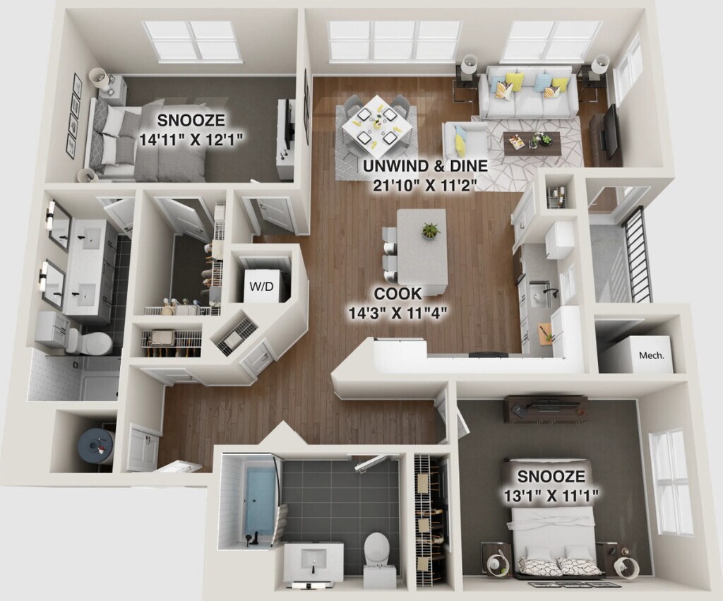 2 Beds, 2 Baths, 1193 sq ftAvailable Nov 15Model Gallery