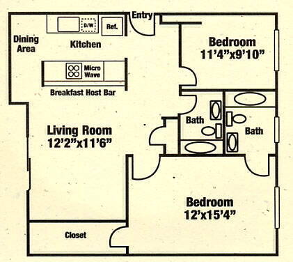 1 Bed 1 Bath - Floorplan 1 2 Bedrooms