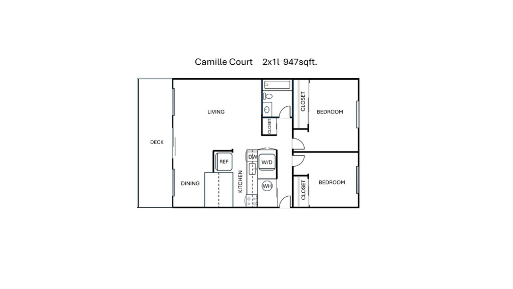 2 Beds, 1 Bath, 950 sq ftLargest 2 BedroomThis is the largest 2 Bedroom at this PropertyModel Gallery