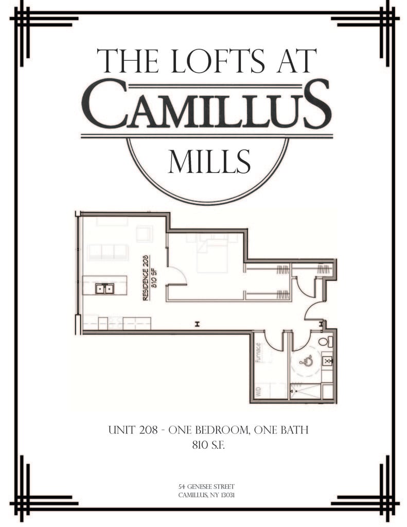 Call us today for rates on the 1 Bedroom option at Camillus Mills