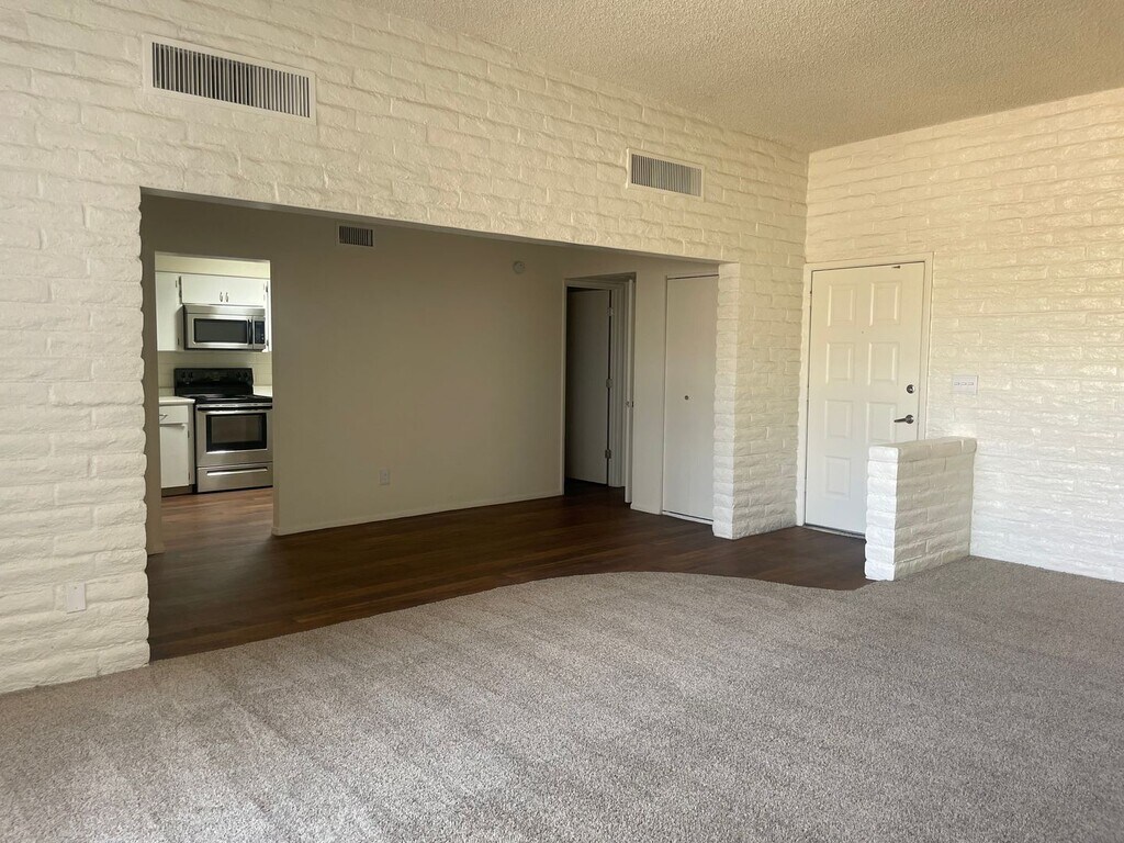 September 24, 2015Townhouse with white brick inside with plenty of room and two bedrooms/ two baths. Nice kitchen, fireplace and 2 patio areas. Complex has a pool with jacuzzi and laundry. Ample parking too. Pet friendly. great management also.Review from Apartments.com