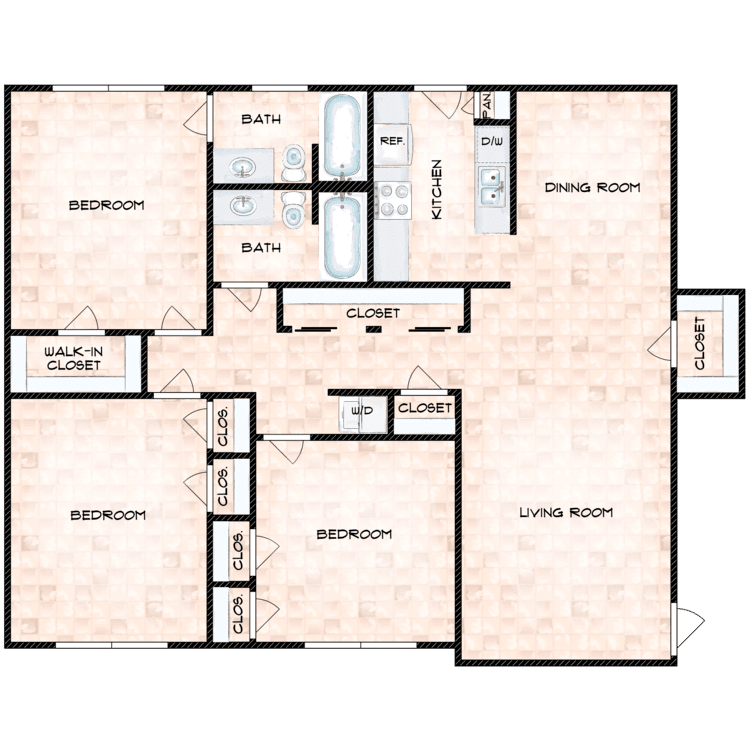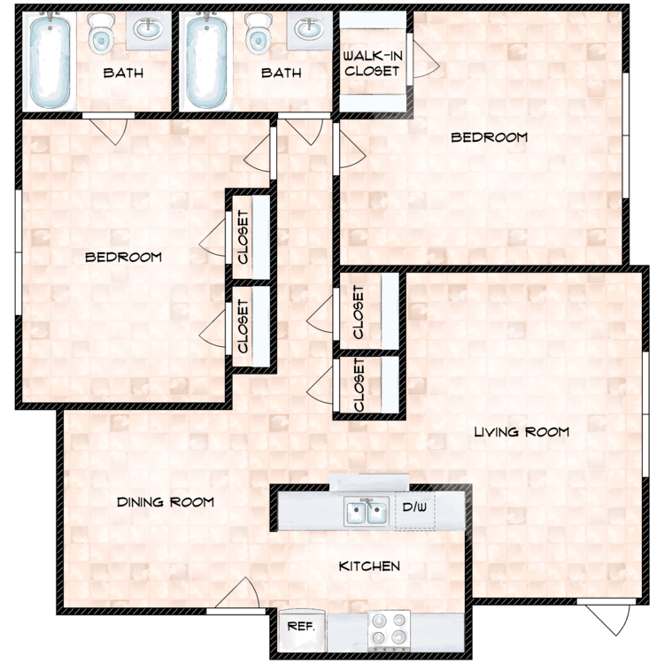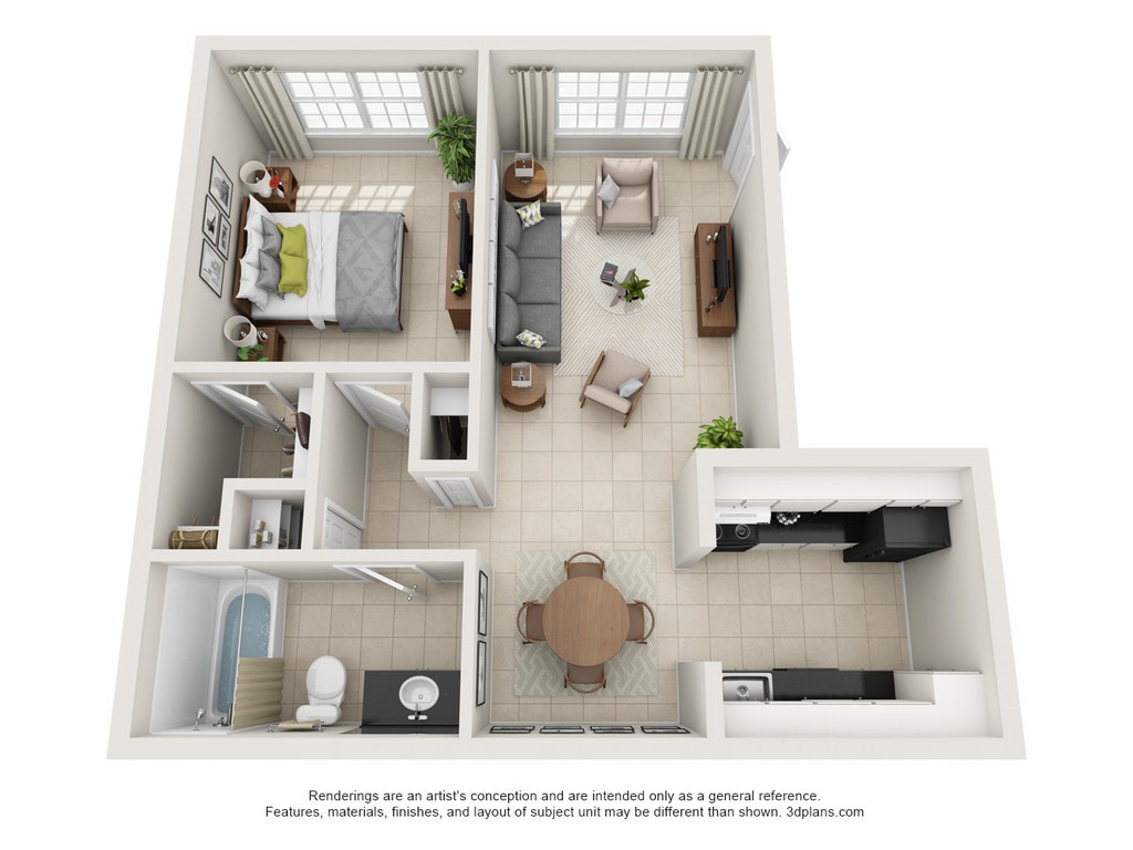 Apartment Model: 1x1From $8201 Bedroom, 1 Bath, 750 sq ftAvailable Now![]()