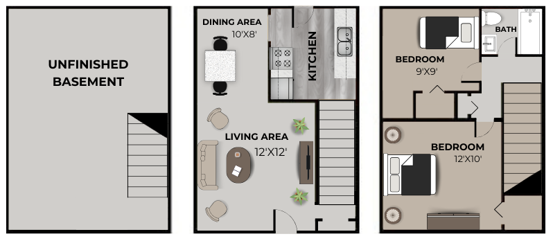 Apartment Model: Campus Court 2 Bedroom, 1 Bath TownhomeFrom $7952 Bedroom, 1 Bath, 1104 sq ftAvailable Now![]()