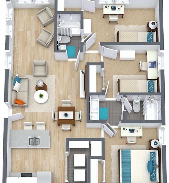 Designer Style 3 Bed X 2 Bath with Patio a Lindell - Floorplan 3 ![]()