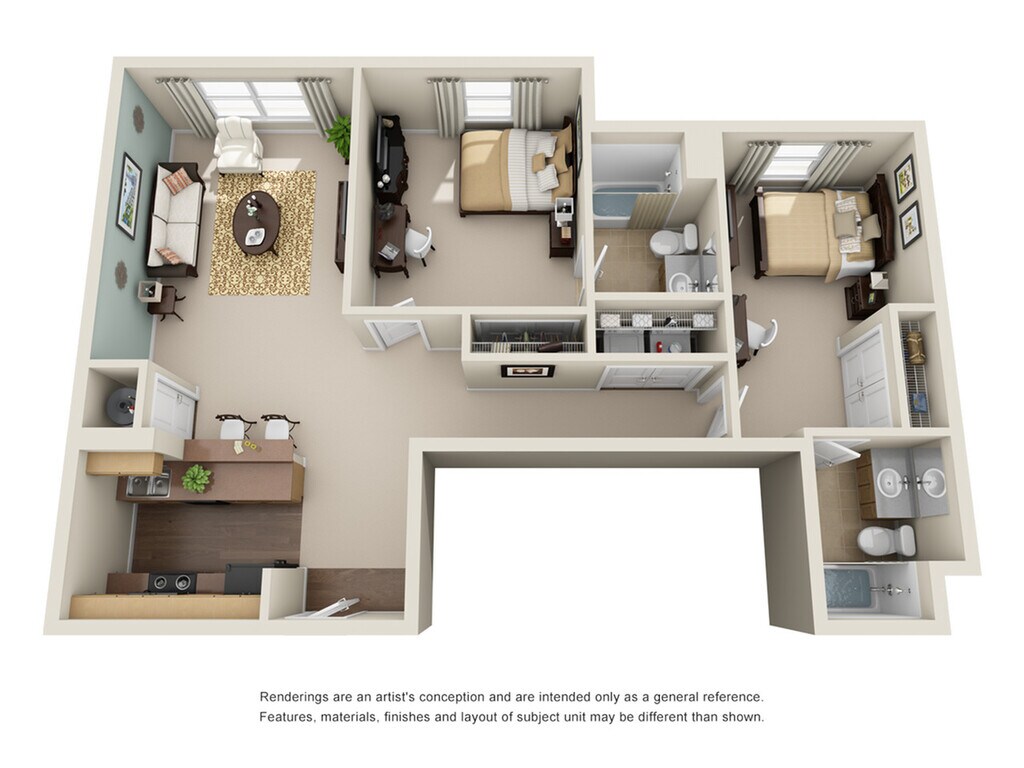 2 Beds, 2 Baths, 980 sq ftAvailable June 5, 2026Model Gallery