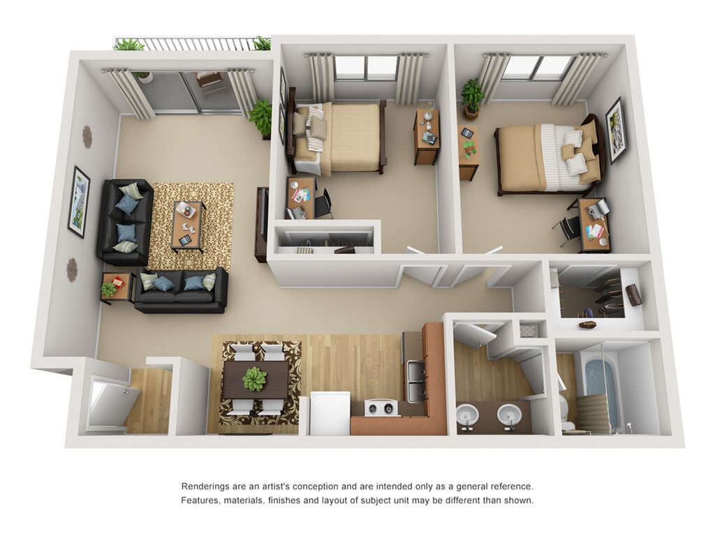 2 Beds, 1 Bath, 840 sq ftAvailable NowModel Gallery