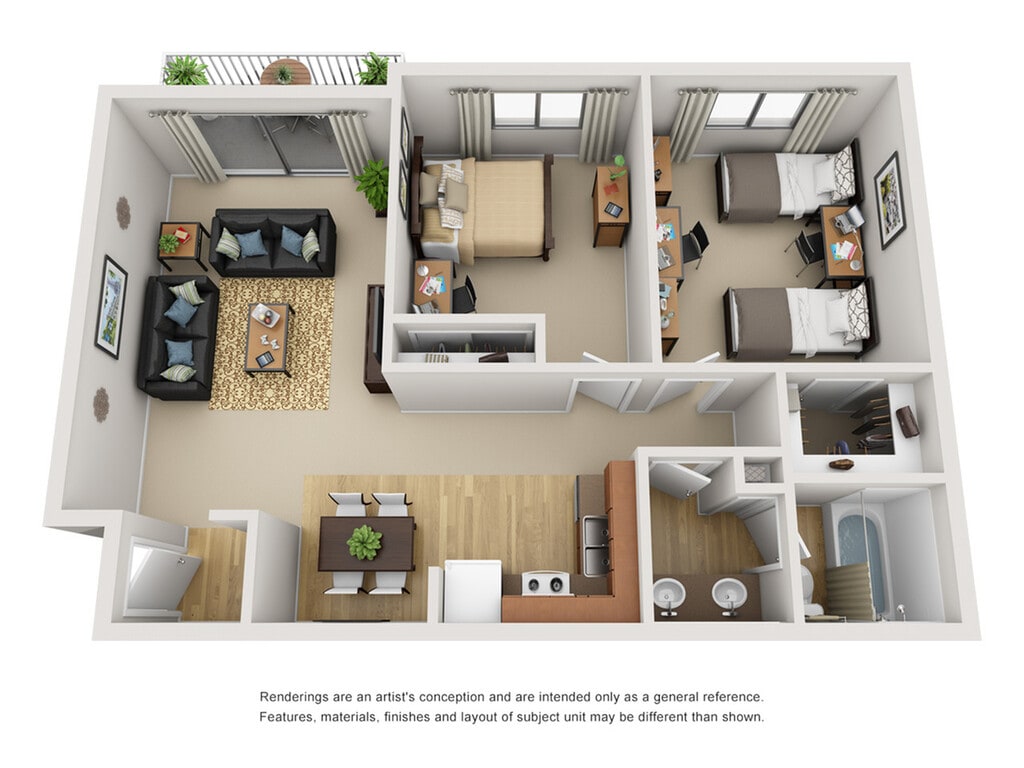 Apartment Model: 2 Bedroom 1 BathroomFrom $4402 Bedroom, 1 Bath, 840 sq ftAvailable Now![]()