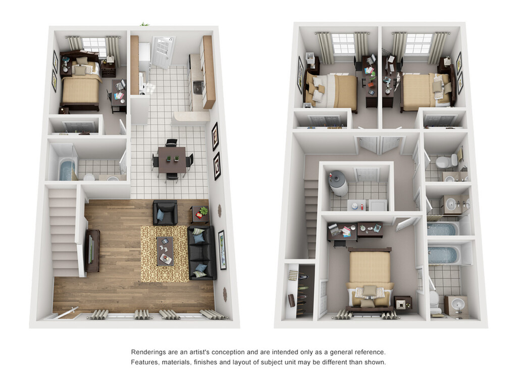 4 Beds, 2.5 Baths, 1260 sq ftAvailable NowModel Gallery