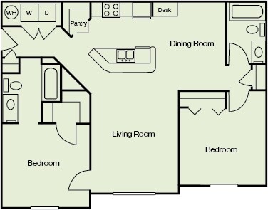 2 Bed/2 Bath - Floorplan 1 3 Bedrooms