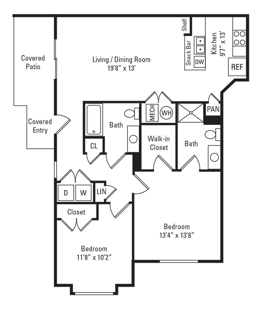 Apartment Model: Two Bedroom 2 Bath- 1138 sqftFrom $2,0802 Bedroom, 2 Bath, 1138 sq ftAvailable Now![]()