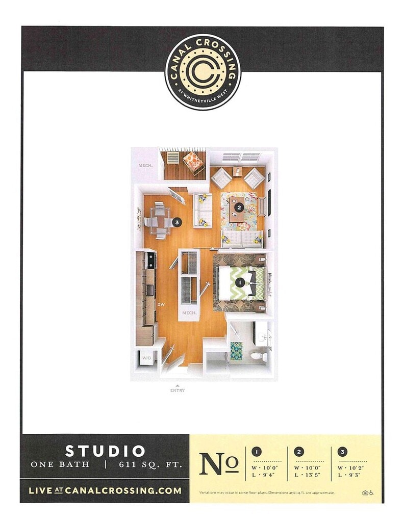 Canal Crossing at Whitneyville West offers Studio to 2 Bedroom apartments starting from $2,095 and having 611–1,075 sq ft. Here is the current pricing and availability:
