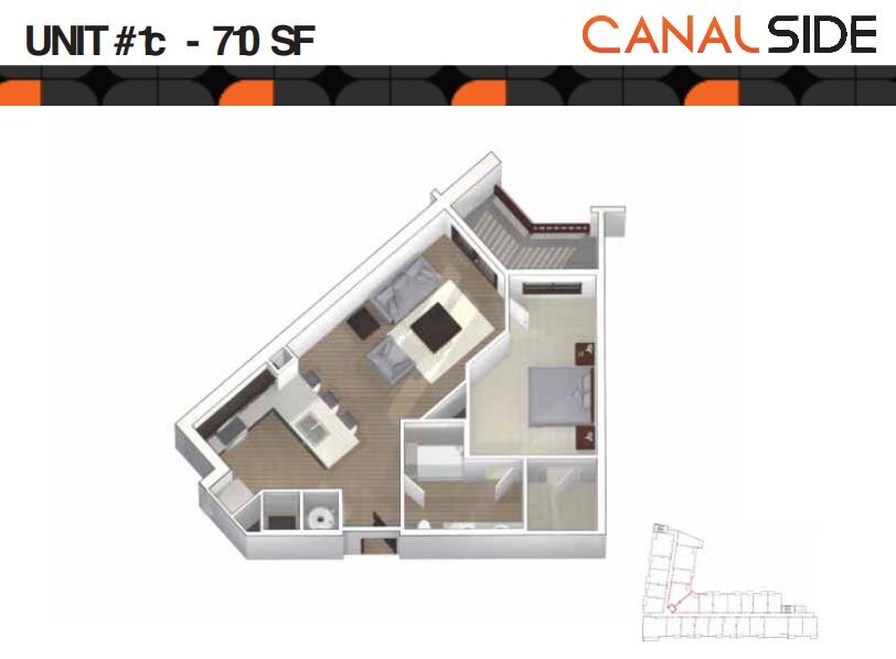 Canalside offers Studio to 2 Bedroom apartments starting from $1,373 and having 517–1,148 sq ft. Here is the current pricing and availability: