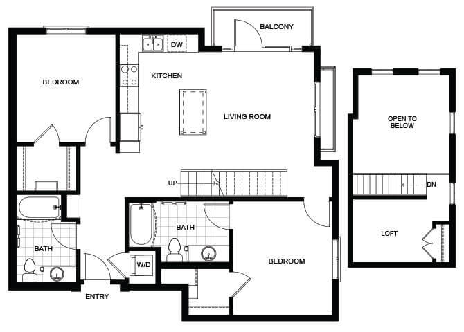 1 Bed, 1 Bath, 721 sq ftModel Gallery