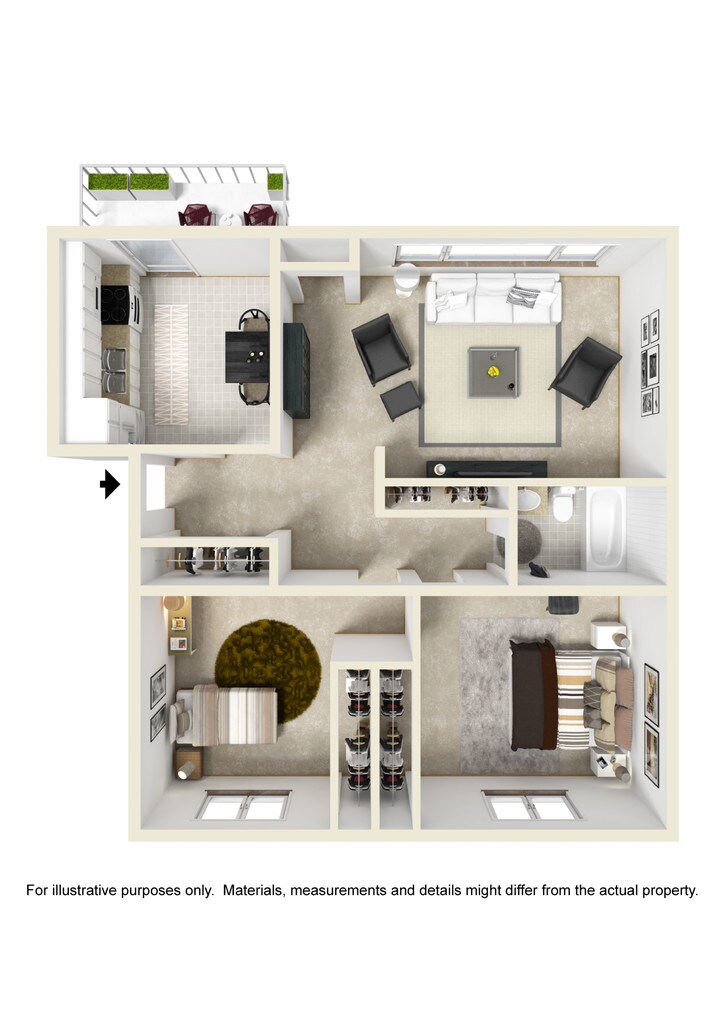 2 Beds, 1 Bath, 831 sq ftModel Gallery