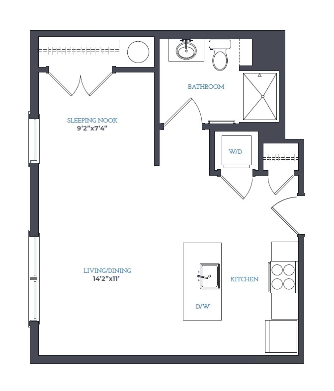 S02 - Floorplan 1 Apartment Unit: A524Apartment Model: S02From $2,192Studio, 1 Bath, 548 sq ftAvailable November 11, 2025Floorplan S01