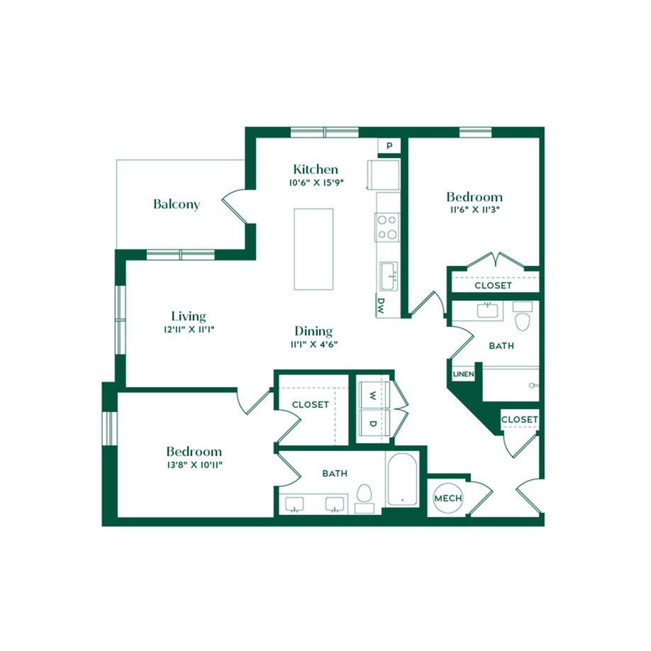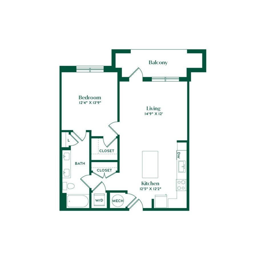 1 Bed, 1 Bath, 728 sq ftAvailable NowModel Gallery