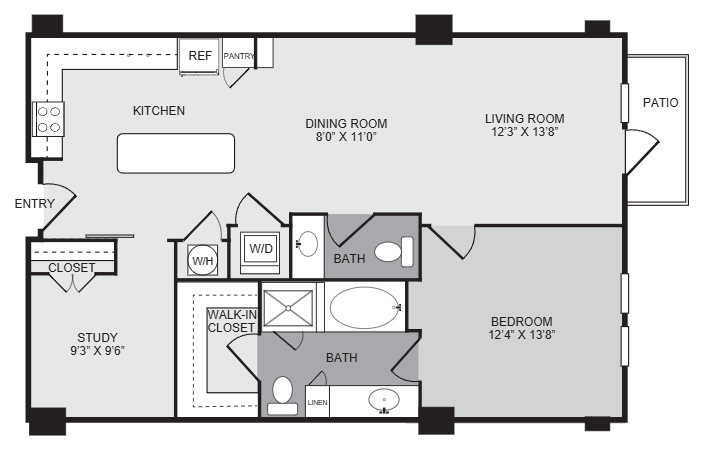 A8D - Floorplan Apartment Unit: 110Apartment Model: A8D1 Bedroom, 2 Bath, 1293 sq ftAvailable May 14, 2026Floorplan S1