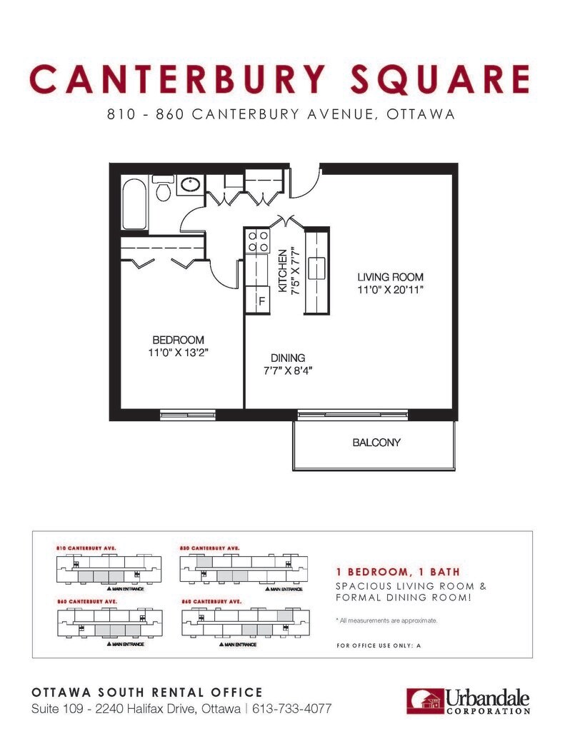 Canterbury Square offers renovated and spacious 1, 2 and 3 bedroom apartments in the Urbandale Acres neighbourhood of Ottawa South. Consisting of four mid-rise apartment buildings joined by an expansive indoor pool, this quiet apartment community offers comfortable rental living with professional on-site management by Urbandale Corporation. Enjoy the stability of rent-controlled living—with predictable rent increases and peace of mind for the long term. The bright, open-concept floorplans are complete with parquet flooring, large windows, and private balconies. Maintain your healthy lifestyle in the newly upgraded fitness room, or entertain for the evening in the party room. Residents of Canterbury Square also enjoy laundry facilities on-site, and friendly on-site staff including 24 hour emergency service. Ideally located near transit stops, parks, and shopping, Canterbury Square is the perfect location to call home. Electric Vehicle (EV) charger units located at the property for resident's use.