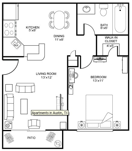 Apartment Model: 1 Bedroom 1 Bath Plan A1From $8201 Bedroom, 1 Bath, 518 sq ftAvailable Now![]()