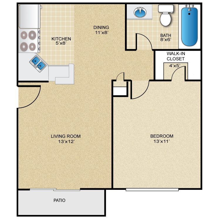Show Unavailable Floorplans1 Bedroom 1 Bath Plan A1