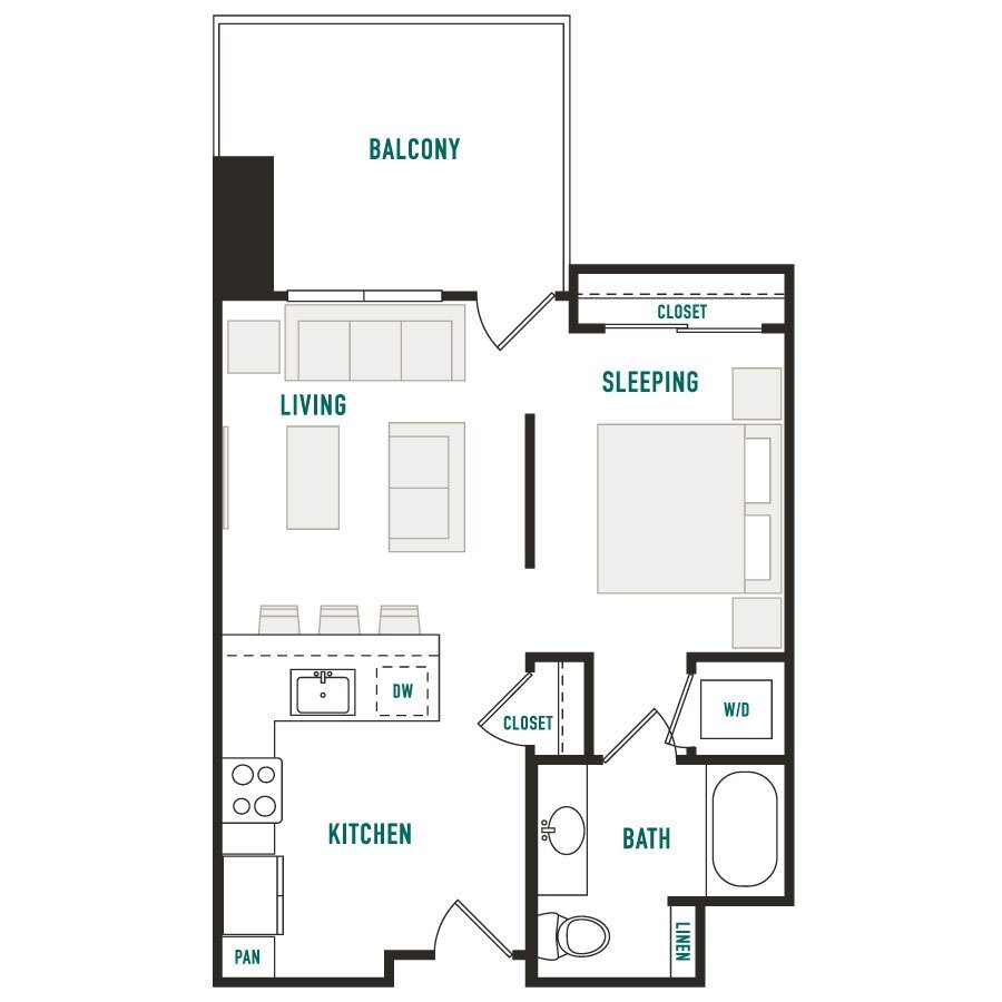 Apartment Model: S1From $1,301Studio, 1 Bath, 529 sq ftAvailable Now![]()