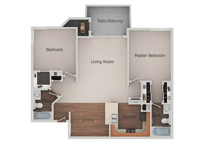 2 Beds, 2 Baths, 935 sq ftAvailable Dec 16Largest 2 BedroomThis is the largest 2 Bedroom at this PropertyModel Gallery