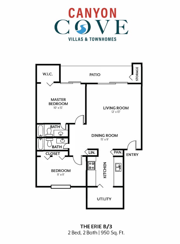 Canyon Cove Villas and Townhomes offers 2 to 3 Bedroom apartments starting from $689 and having 932–1,350 sq ft. Here is the current pricing and availability: