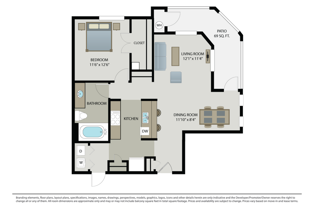 Apartment Model: Plan 1x1B1 Bedroom, 1 Bath, 890 sq ftAvailable Now![]()