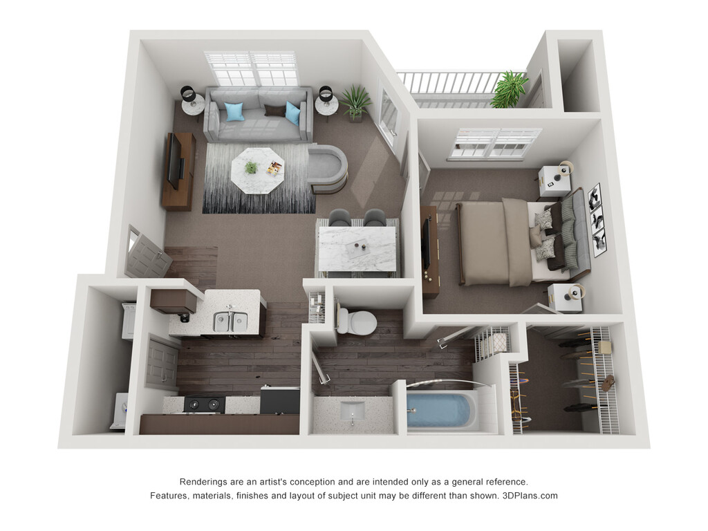 1 Bed, 1 Bath, 569 sq ftAvailable NowModel Gallery