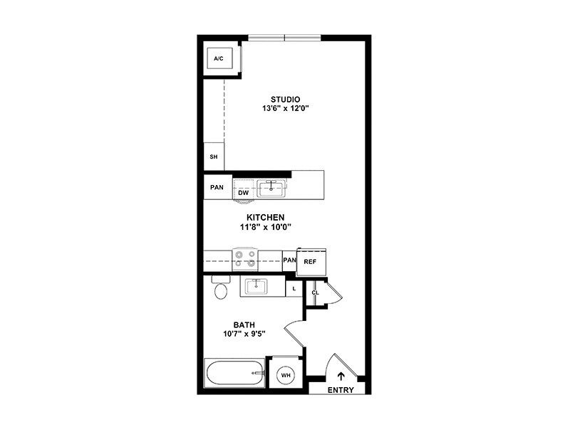 Studio, 1 Bath, 323 sq ftAvailable NowModel Gallery